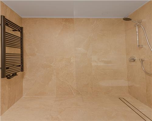 Incalzire in pardoseala, ventiloconvectoare Mitsubishi Electric, parchet stratificat, geamuri tripan, usi Pinum, baterii Hansgrohe, rezervor incastrat Tece.
