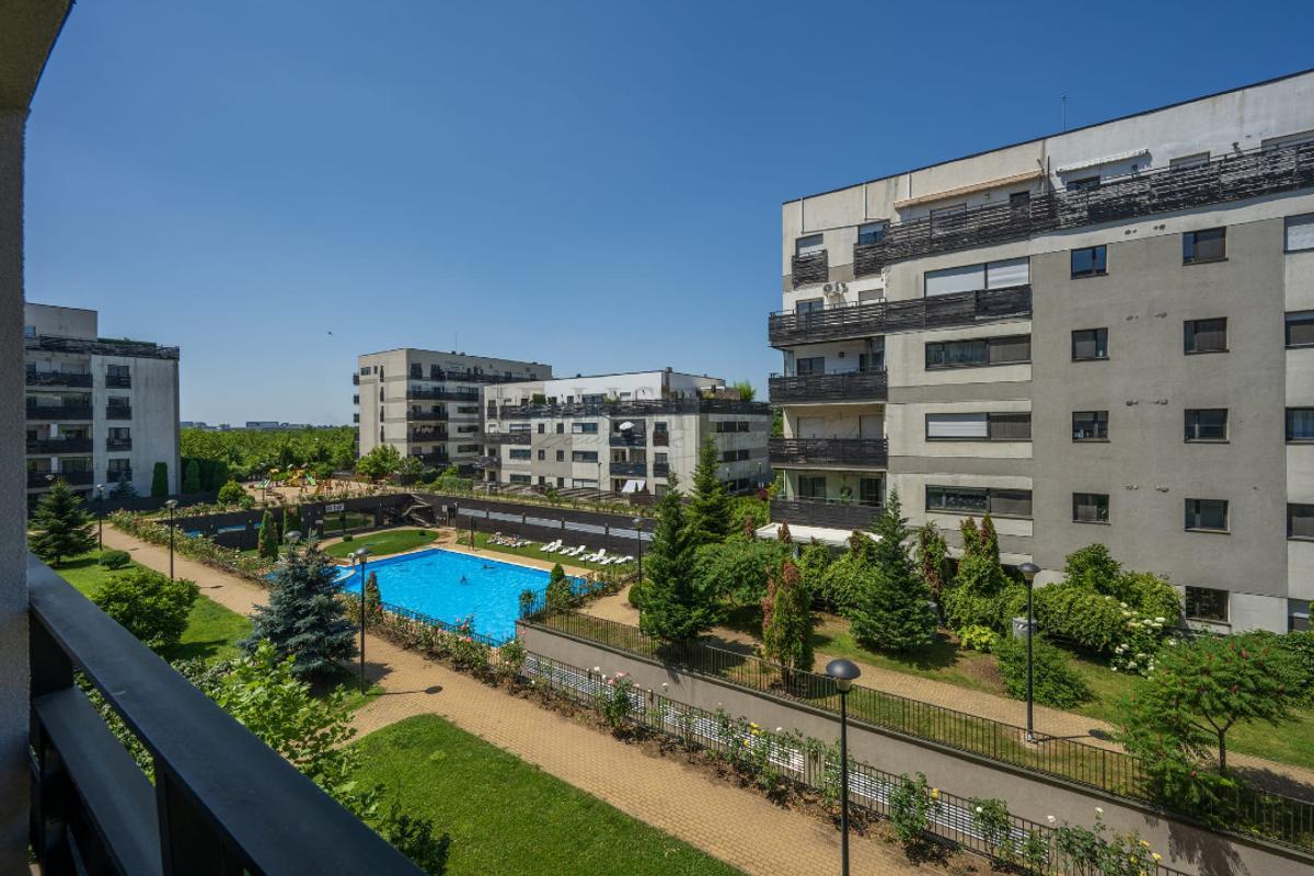 Rezidentii beneficiaza de piscina, sala de sport, loc de joaca pentru copii, precum si de acces securizat si monitorizare BGS.