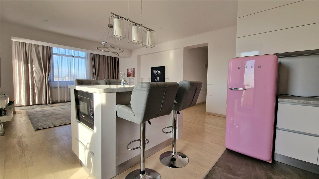 We present a rare opportunity to acquire a luxury 3-room penthouse located in the Baneasa area, in a modern building completed in 2019. The apartment occupies the entire 5th floor, offering privacy, natural light, and an exclusive atmosphere.