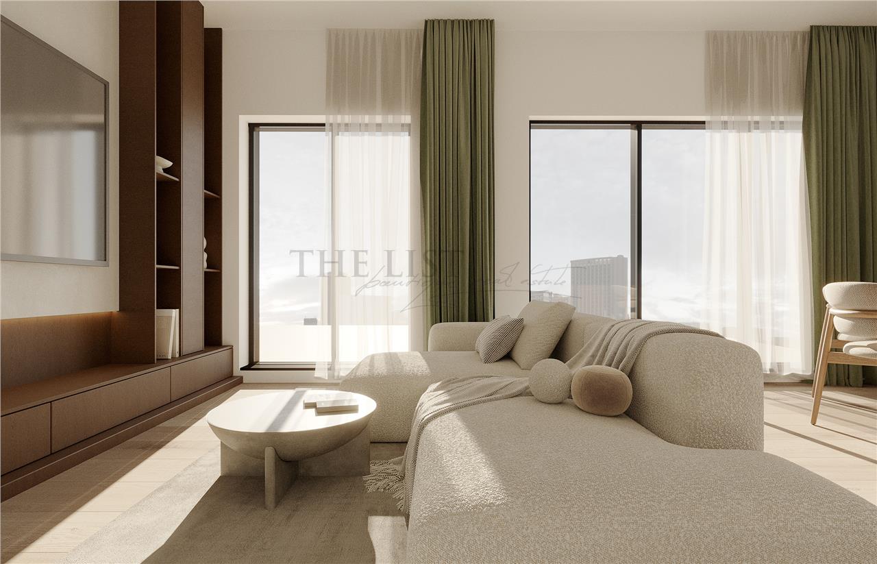 The apartment is located on the 2 st floor of a 3-story building, with a usable area of 128 sqm and a generous terrace of 49 sqm. It is divided as follows: living room with dining area and open-space kitchen of 55 sqm, master bedroom of 22.80 sqm with en-suite bathroom of 5.3 sqm, and two other bedrooms that share a common bathroom.