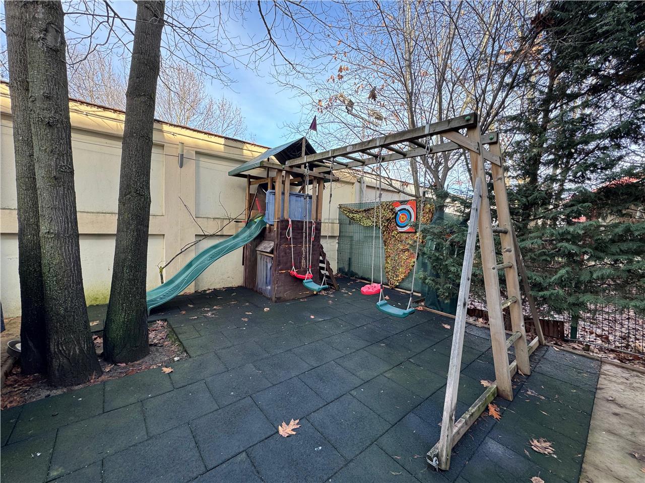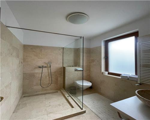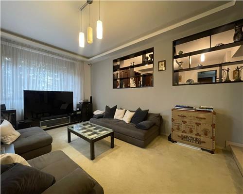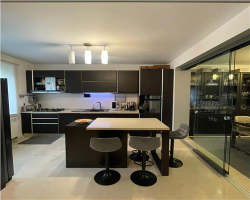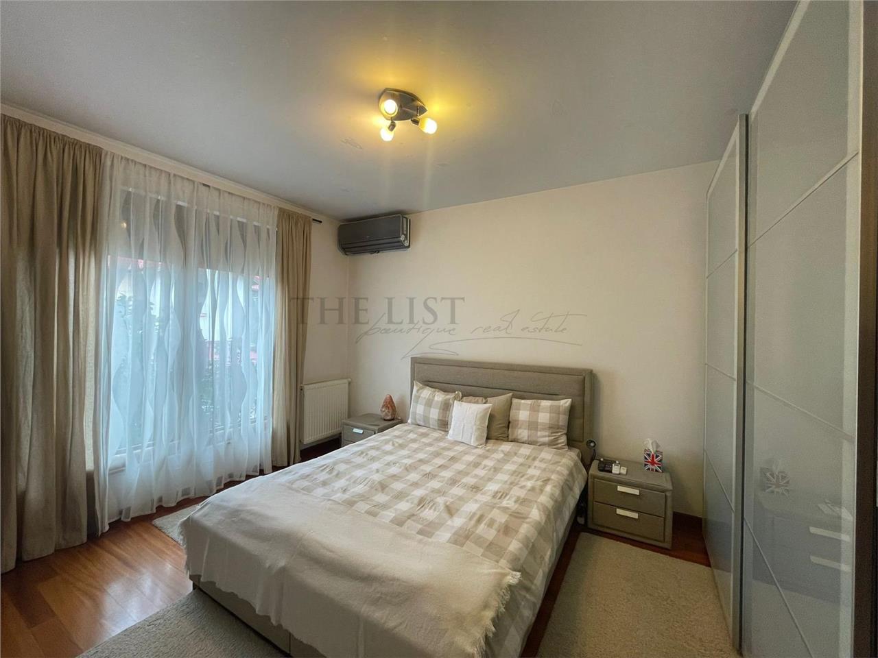 The property has a total area of 362 sqm, featuring 5 rooms and 5 bathrooms, contemporary design, and a landscaped courtyard of approximately 380 sqm. It is perfect for a family and is situated in a gated residential complex with only 20 units, in a quiet and safe area in the north of Bucharest, known for its exclusive community and excellent access to educational facilities and green spaces.