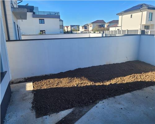 Yard: Private yard of 400 sqm, two indoor parking spaces, fence made of Porotherm brick, gates made of 3 mm perforated sheet metal.