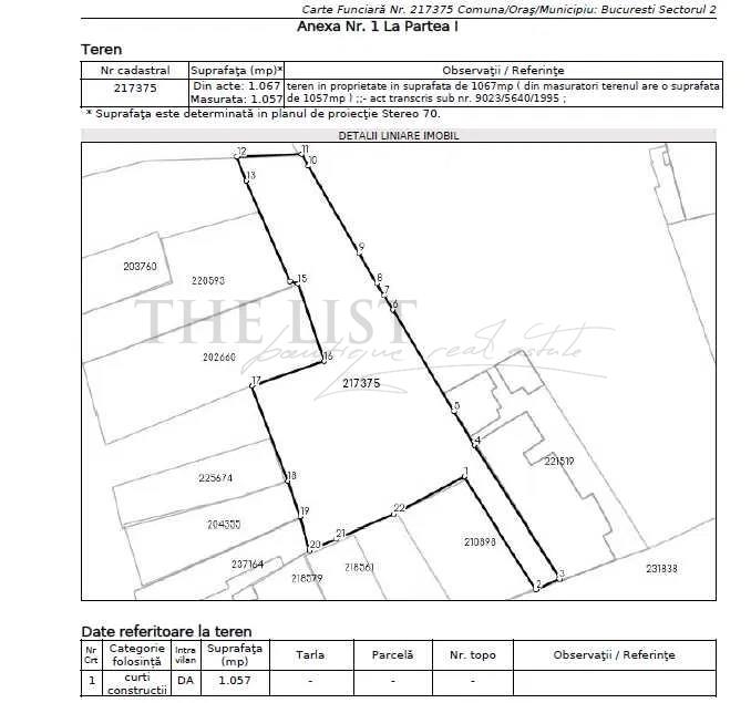 Terenul are o suprafata de 1060 mp si deschidere la strada, fiind amplasat intr-o zona exclusiv rezidentiala, formata din case si blocuri cu regim mic de inaltime.